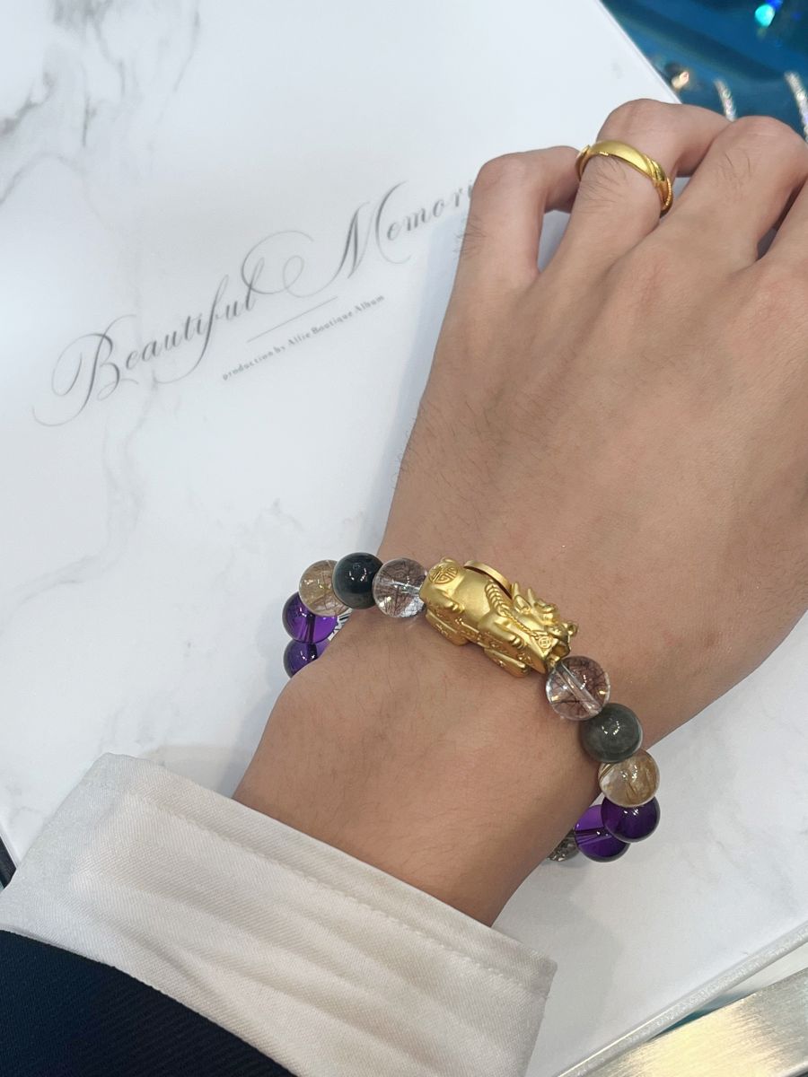 貔貅:貔貅乃龍之九子,詳瑞之神獸,以金銀玉器為食,只吃不吐,納食四方之財。貔貅能將主人身邊不好的魑魍邪祟一吞下肚,並將其困於腹中,轉化成財,固有一說「貔貅在手發財順手,家中有貔貅萬事無憂」。