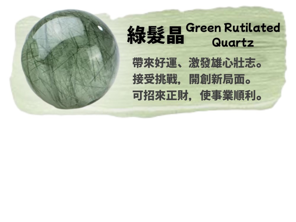 綠髮晶被視為最能擬聚正財氣的一種水晶,可以增加財富, 對於上班族佩戴綠髮晶也有使正業增加財富甚至升遷的效果,對於創業、常出差談事業、 或寄望升職的朋友相當有幫助。 最重要的是,由於綠髮晶是因為包含陽起石的礦物質,所以佩戴綠髮的男生借著陽起石及天然水晶的雙重能量,更有助於性功能的加強。
